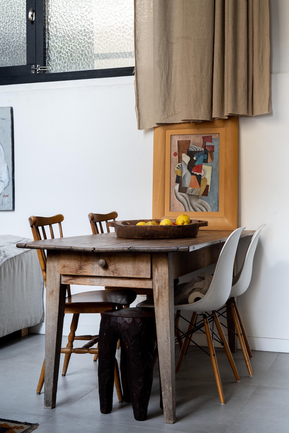 Un soin particulier a été apporté à la gestion de la lumière naturelle, filtrée par des rideaux légers et accentuée par des choix de couleurs neutres qui élargissent visuellement les volumes. Quelques objets design, des cadres discrets et des éléments de décoration soigneusement sélectionnés viennent ponctuer les pièces, apportant de la chaleur sans surcharge.